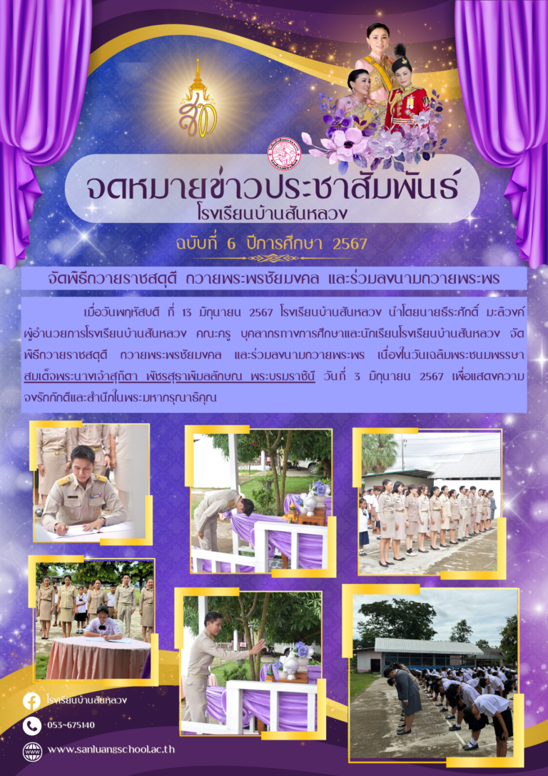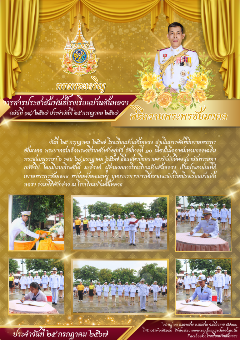 วารสารประชาสัมพันธ์โรงเรียนบ้านสันหลวง จัดพิธีถวายราชสดุดี ถวายพระพรชัยมงคล และร่วมลงนามถวายพระพร