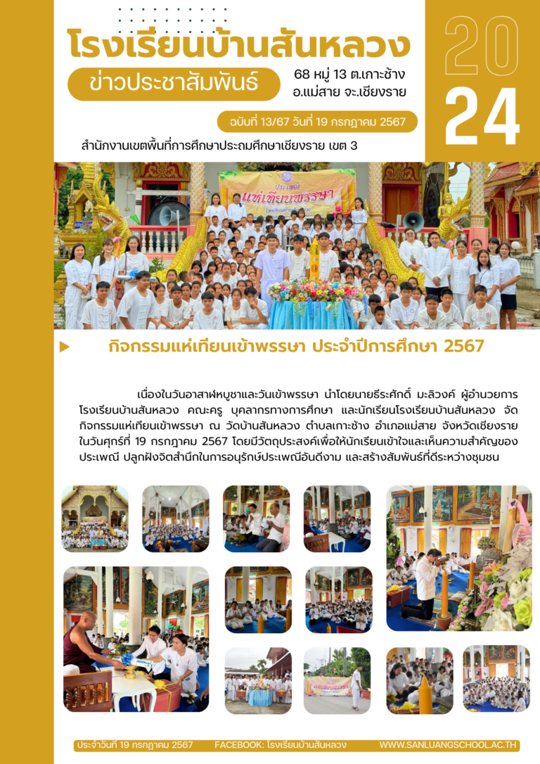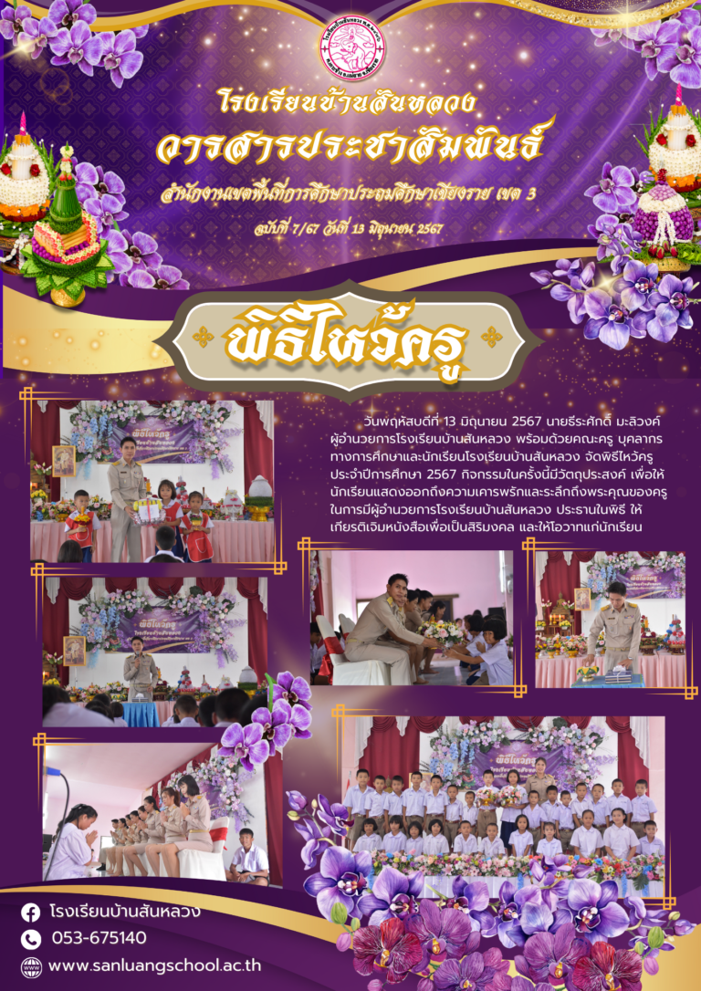 วารสารประชาสัมพันธ์โรงเรียนบ้านสันหลวง จัดกิจกรรมพิธีไหว้ครู