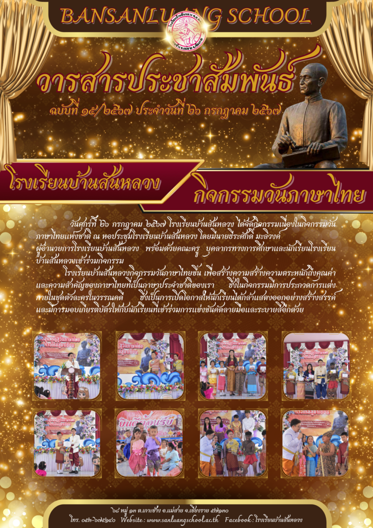 กิจกรรมวันภาษาไทย โรงเรียนบ้านสันหลวง ปีการศึกษา 2567