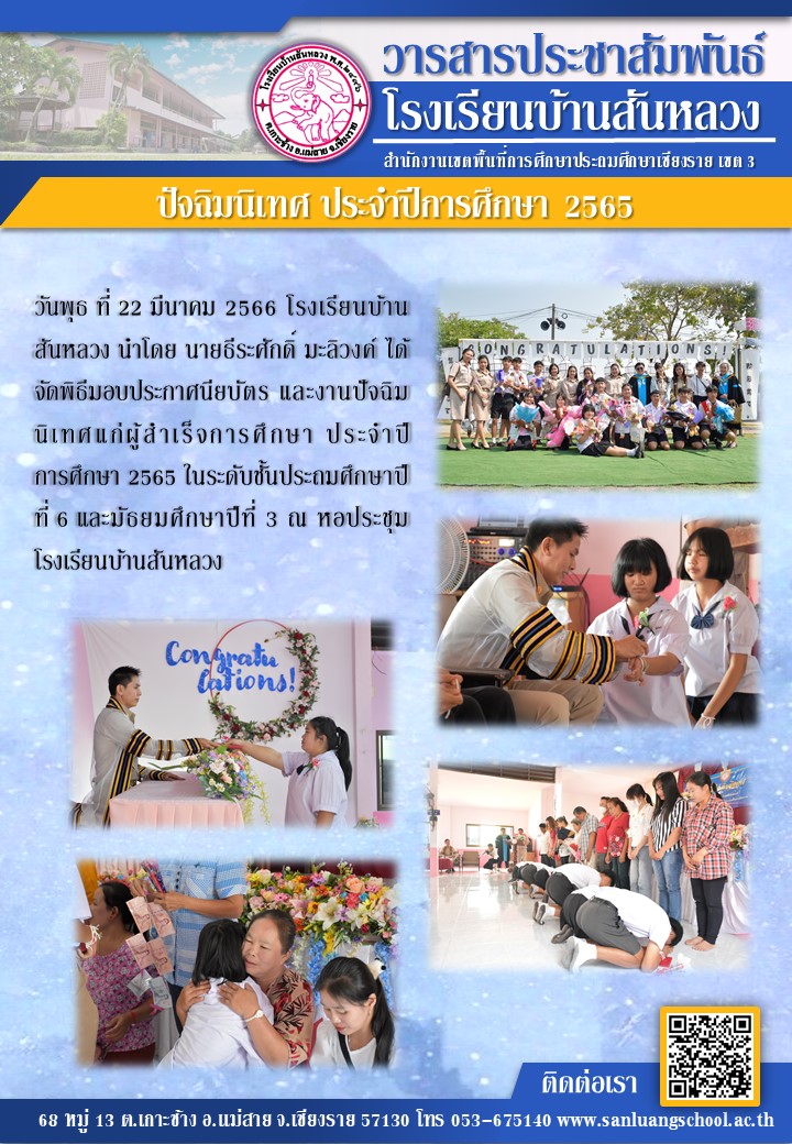 พิธีมอบประกาศนียบัตร และงานปัจฉิมนิเทศแก่ผู้สำเร็จการศึกษา ประจำปีการศึกษา 2565