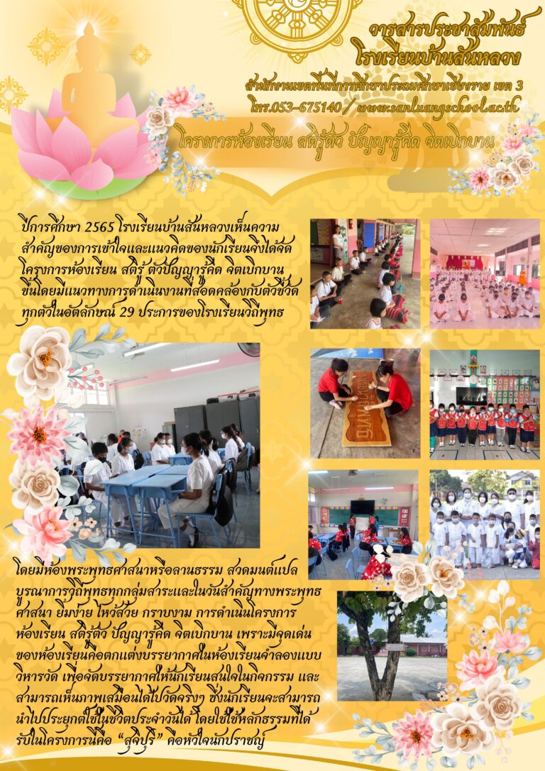 โครงการห้องเรียน สติรู้ตัว ปัญญารู้คิด จิตเบิกบาน