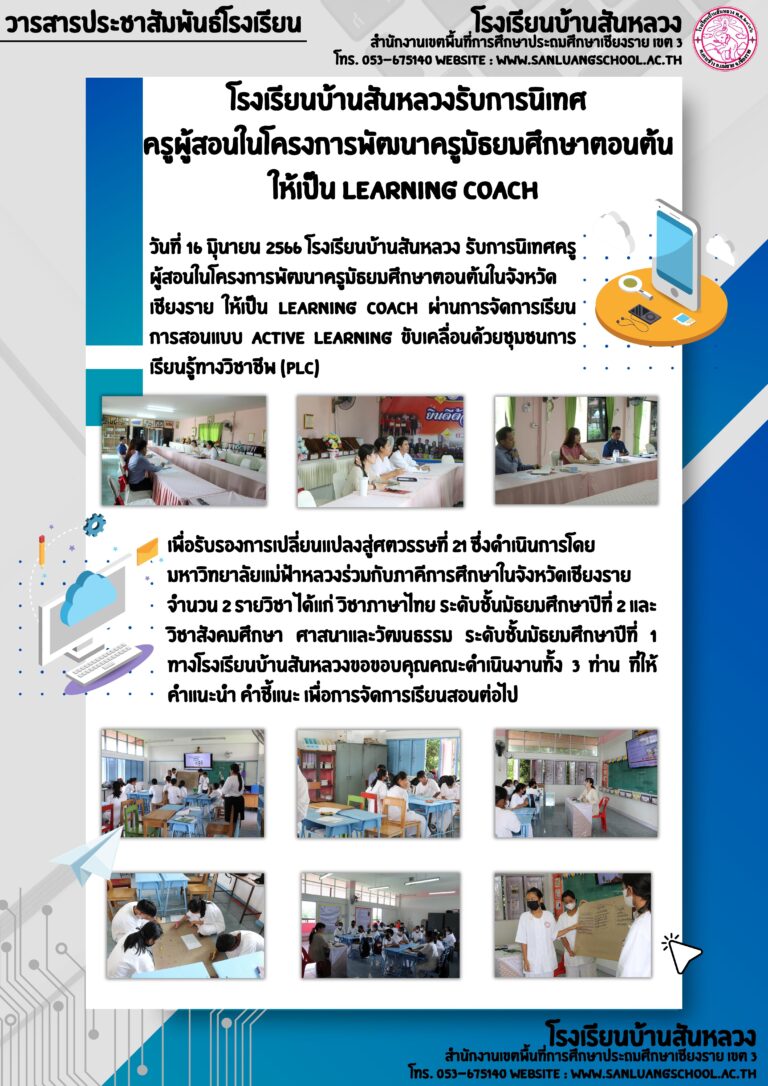 การนิเทศครูผู้สอนในโครงการพัฒนาครูมัธยมศึกษาตอนต้นในจังหวัดเชียงรายให้เป็น Learning Coach ผ่านการจัดการเรียนการสอนแบบ Active Learning ขับเคลื่อนด้วยชุมชนการเรียนรู้ทางวิชาชีพ (PLC)