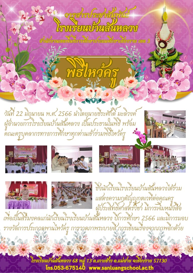 พิธีไหว้ครู โรงเรียนบ้านสันหลวง ประจำปีการศึกษา 2566