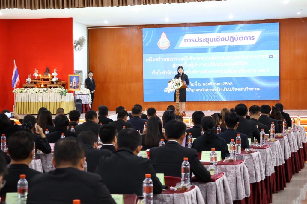 เมื่อวันที่ 12 พฤศจิกายน 2568 นางปุณณดา เตจ๊ะ ผู้อำนวยการโรงเรียนบ้านสันหลวง ได้เข้าร่วม การประชุมเชิงปฏิบัติการเสริมสร้างสมรรถนะผู้บริหารสถานศึกษาและบุคลากรทางการศึกษา สู่การเป็นผู้นำการเปลี่ยนแปลงยุคดิจิทัล ณ ห้องประชุมหิรัญนครเงินยางค์ โรงเรียนเชียงแสนวิทยาคม อำเภอเชียงแสน จังหวัดเชียงราย โดยมี ดร.สุธีรัตน์ อริเดช ผู้อำนวยการสำนักงานเขตพื้นที่การศึกษาเชียงราย เขต 3 เป็นประธานในพิธีเปิดการอบรม