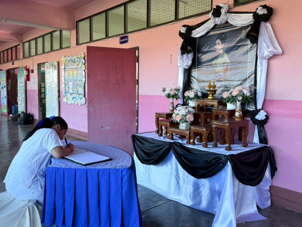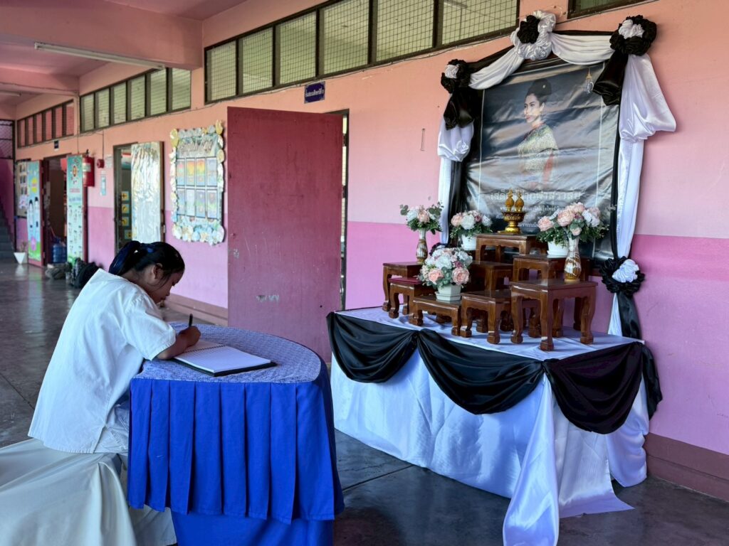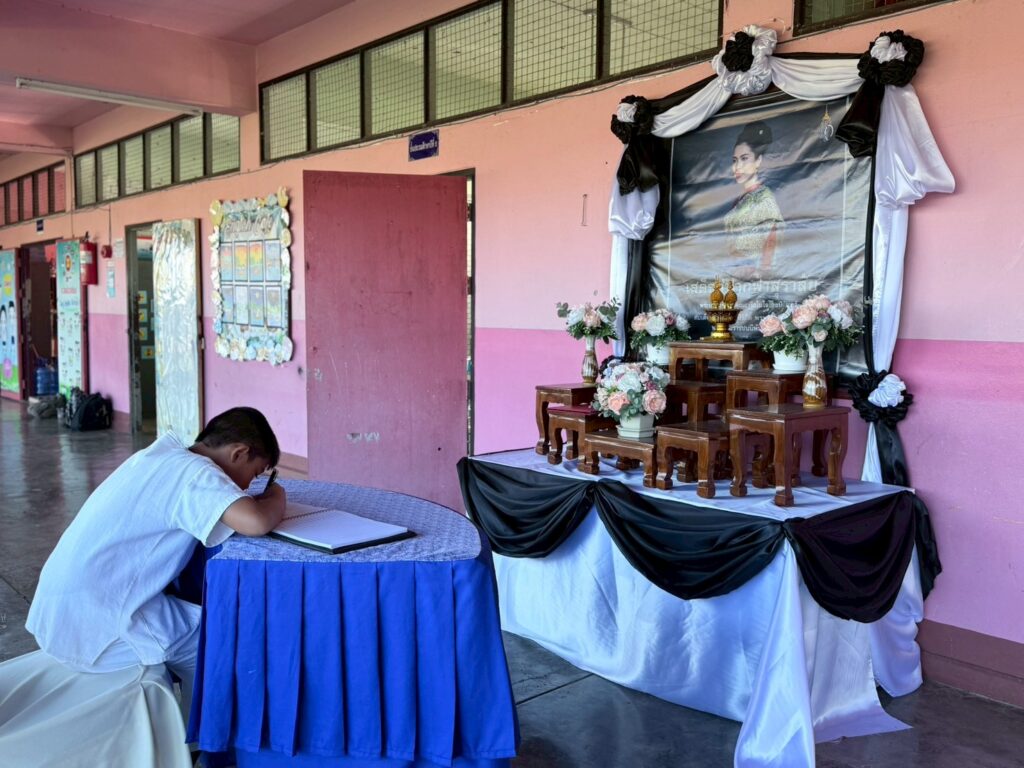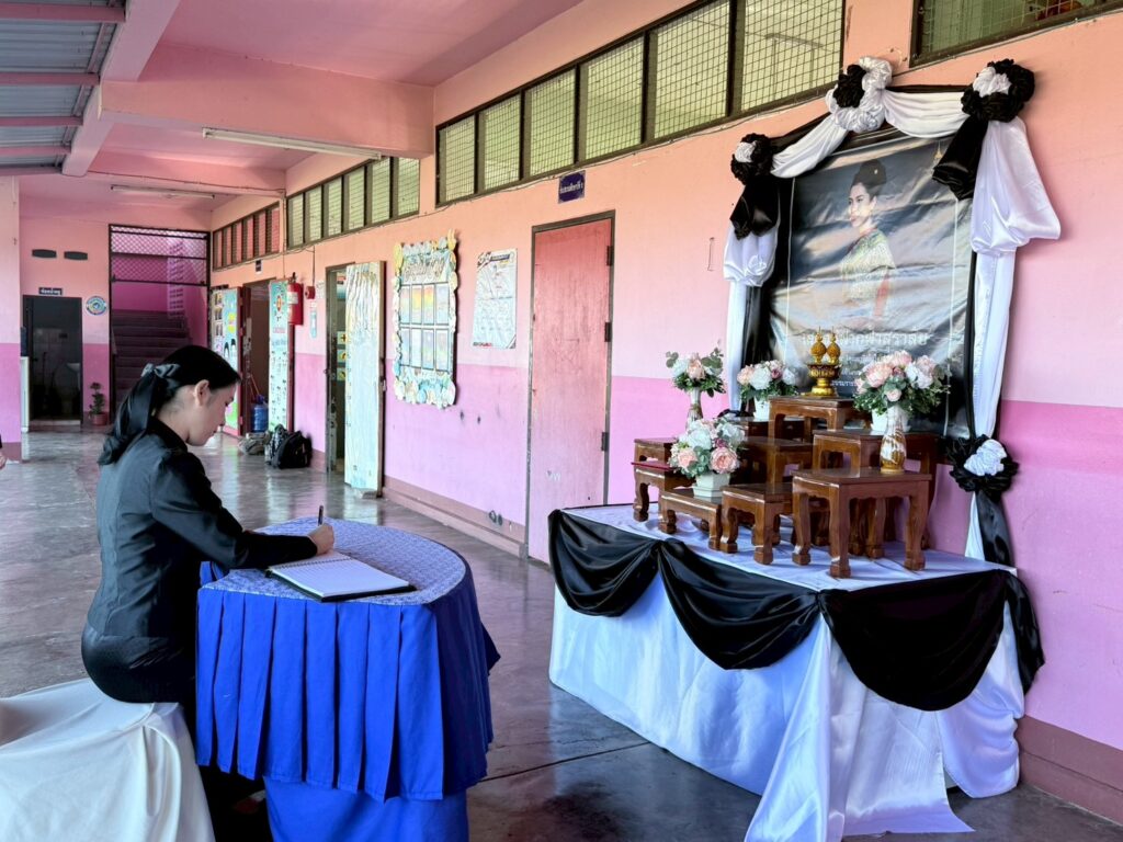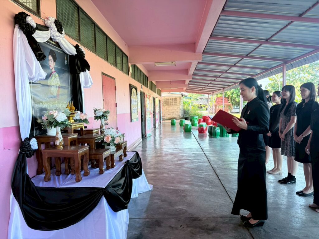 วันที่ 21 พฤศจิกายน 2568 นางปุณณดา เตจ๊ะ ผู้อำนวยการโรงเรียนบ้านสัันหลวง คณะครู บุคลากรทางการศึกษา และนักเรียน ได้จัดพิธี ยืนสงบนิ่งไว้อาลัยและน้อมรำลึกในพระมหากรุณาธิคุณอันหาที่สุดมิได้ ของสมเด็จพระนางเจ้าสิริกิติ์ พระบรมราชินีนาถ พระบรมราชชนนีพันปีหลวง เพื่อถวายความอาลัยและแสดงความจงรักภักดีแด่พระองค์ผู้ทรงเป็นแม่ของแผ่นกิน ผู้เปี่ยมด้วยพระเมตตาธรรมและทรงอุทิศพระองค์เพื่อความผาสุกของพสกนิกรชายไทยตลอดพระชนมชีพ