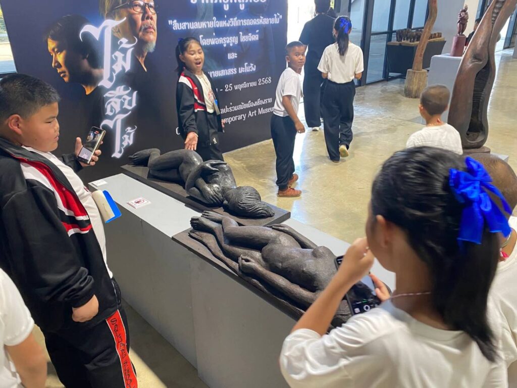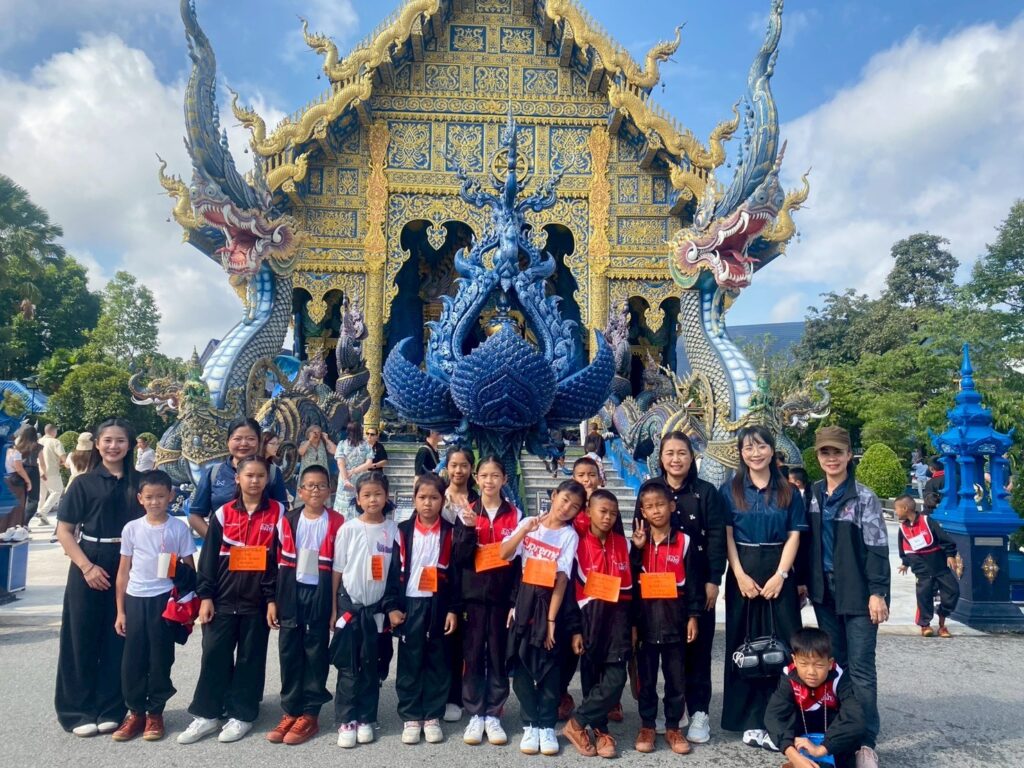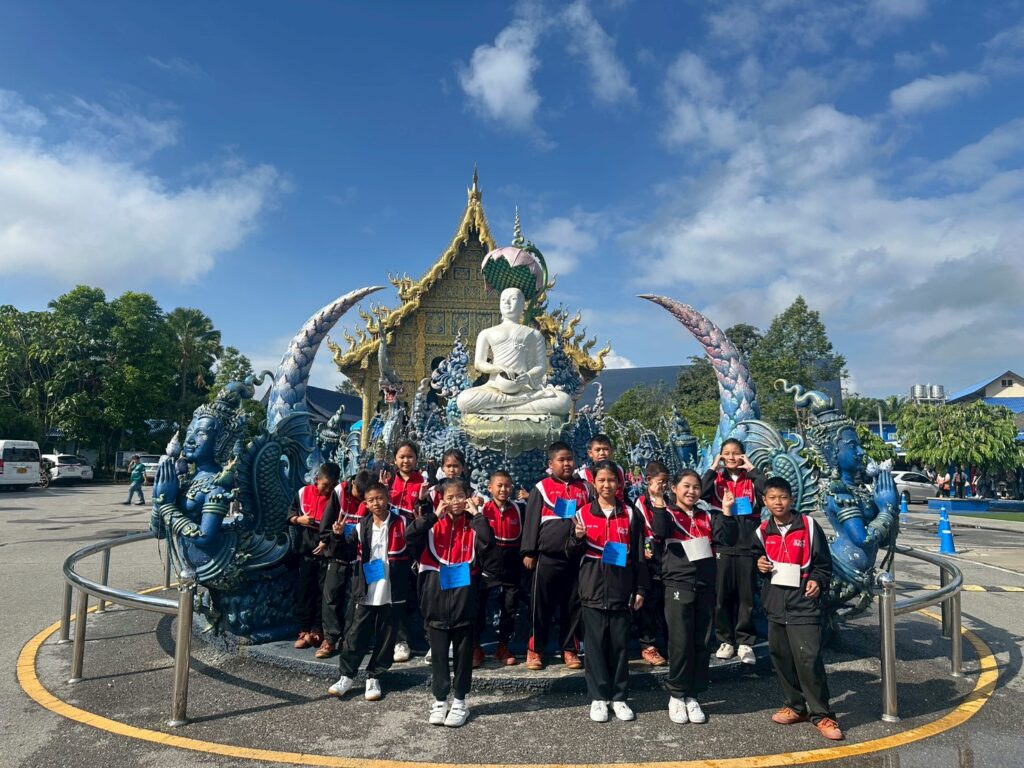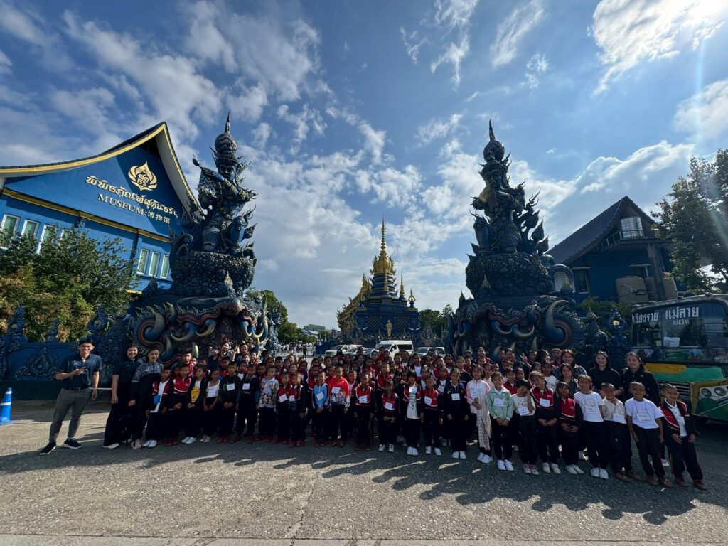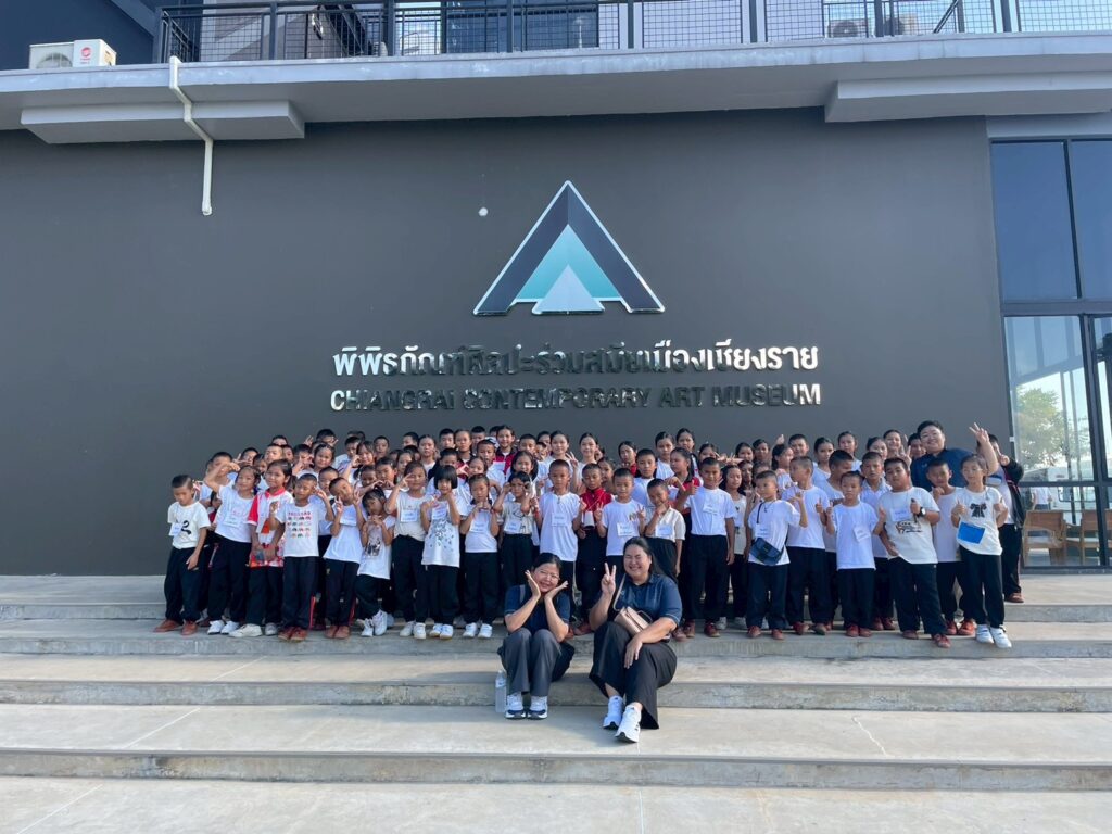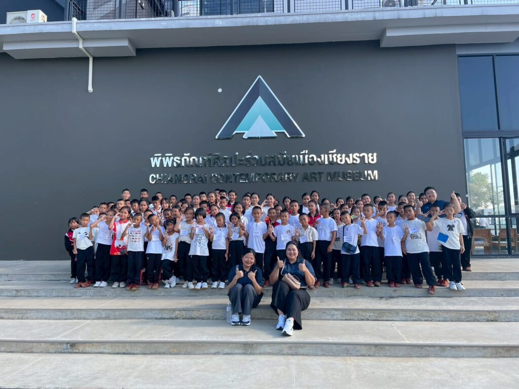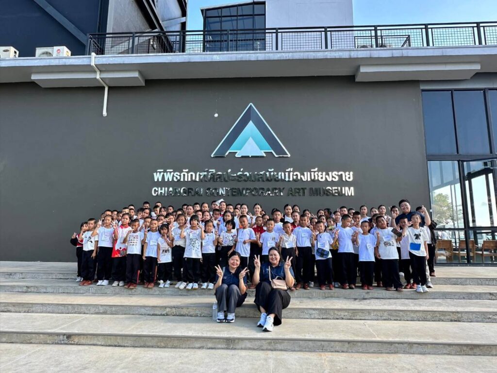 ในการนี้ นักเรียนได้เรียนรู้เกี่ยวกับประวัติความเป็นมาของวัดร่องเสือเต้น เดิมเป็นที่ตั้งของวัดร้างมาแต่โบราณกาล เนื่องจากพื้นที่นี้มีเสือที่ชอบกระโดดข้ามร่องน้ำ ชาวบ้านจึงเรียกบริเวณนี้ว่า “ร่องเสือเต้น” และกลายเป็นชื่อหมู่บ้านมาจนถึงปัจจุบัน จากนั้นนักเรียนได้เข้าชมพิพิธภัณฑ์ศิลปะร่วมสมัยเมืองเชียงราย ศิลปะส่งเสริมให้บุคคลมีความคิดริเริ่มสร้างสรรค์ มีจินตนาการ และสามารถแสดงออกได้อย่างอิสระ การทำงานศิลปะช่วยให้ผ่อนคลาย ลดความเครียด และทำให้ชีวิตมีความสุขและมีสีสันมากขึ้น การศึกษาศิลปะช่วยพัฒนาทักษะและความสามารถตามความถนัดของตนเองได้ และนำประสบการณ์ที่ได้รับไปต่อยอดในการเรียนรู้ในชั้นเรียนต่อไป