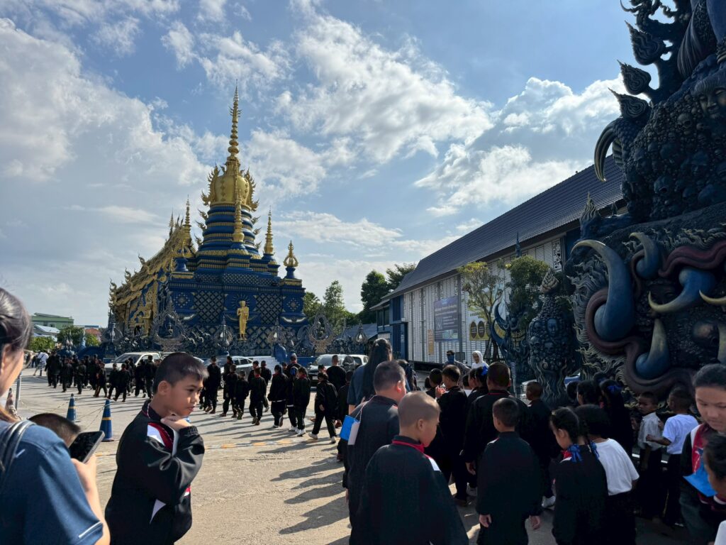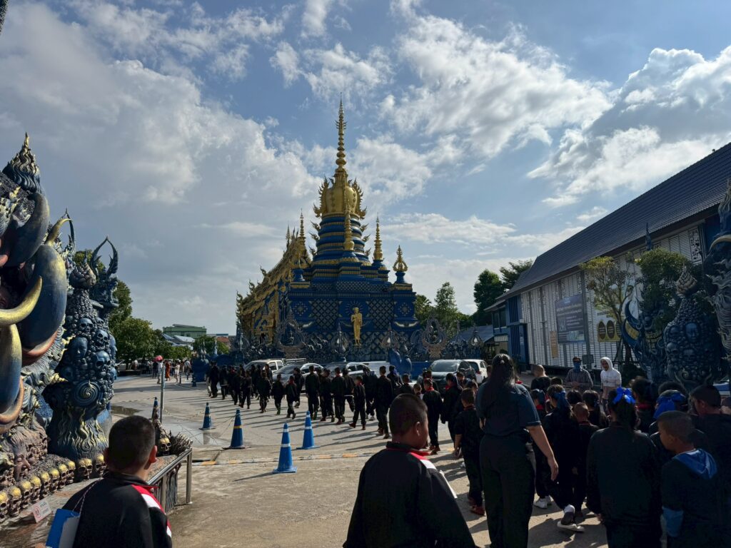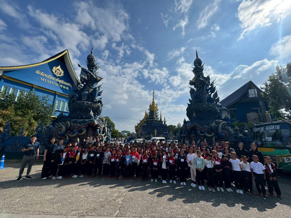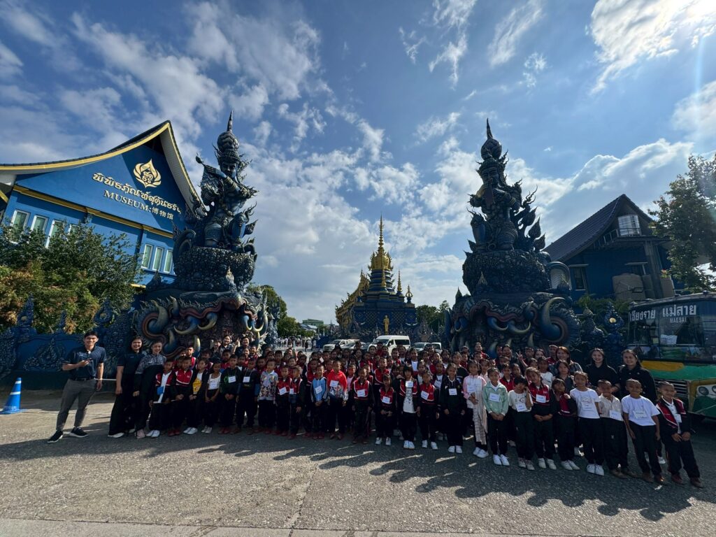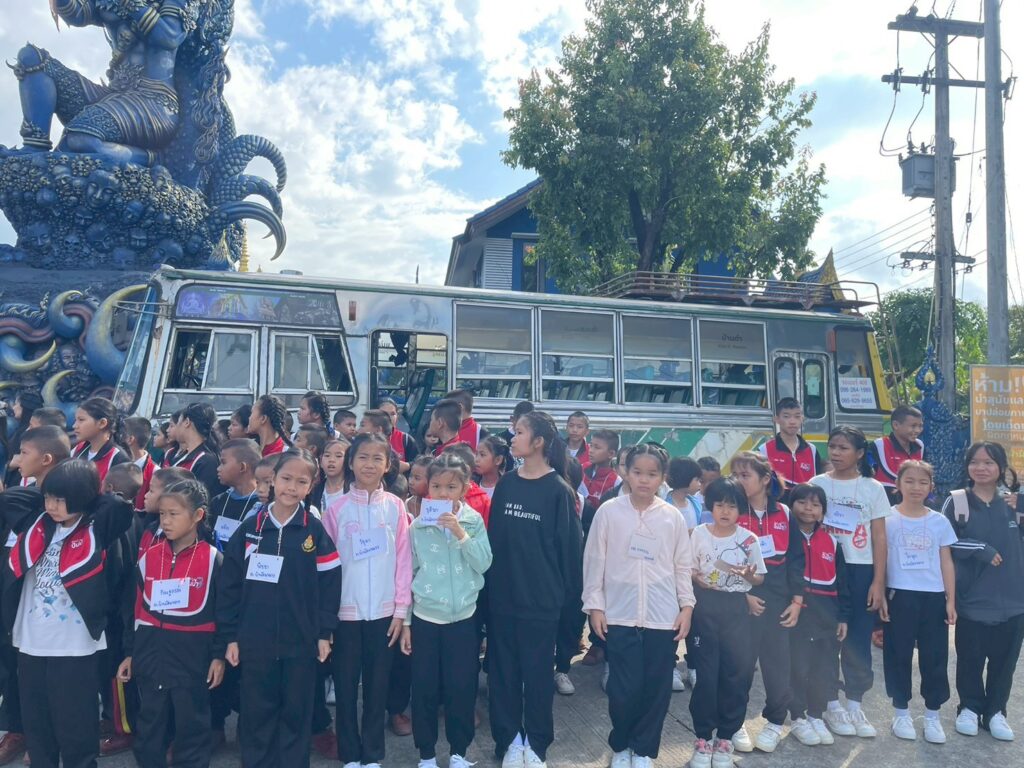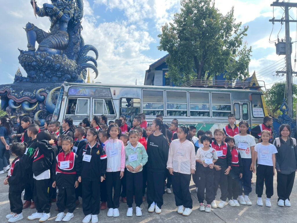 เมื่อวันที่ 14 พฤศจิกายน 2568 นำโดย นางปุณณดา เตจ๊ะ ผู้อำนวยการโรงเรียนบ้านสันหลวง พร้อมด้วยคณะครูและบุคลากรทางการศึกษา ได้จัดกิจกรรมการเรียนรู้สู่โลกกว้างให้กับนักเรียนเพื่อเปิดประสบการณ์การเรียนรู้นอกห้องเรียนและส่งเสริมทักษะด้านศิลปะและวัฒนธรรม โดยนำนักเรียนเดินทางไปศึกษาความรู้ ณ สองแหล่งเรียนรู้ของจังหวัดเชียงราย ได้แก่ วัดร่องเสือเต้น และพิพิธภัณฑ์ศิลปะร่วมสมัยเมืองเชียงราย