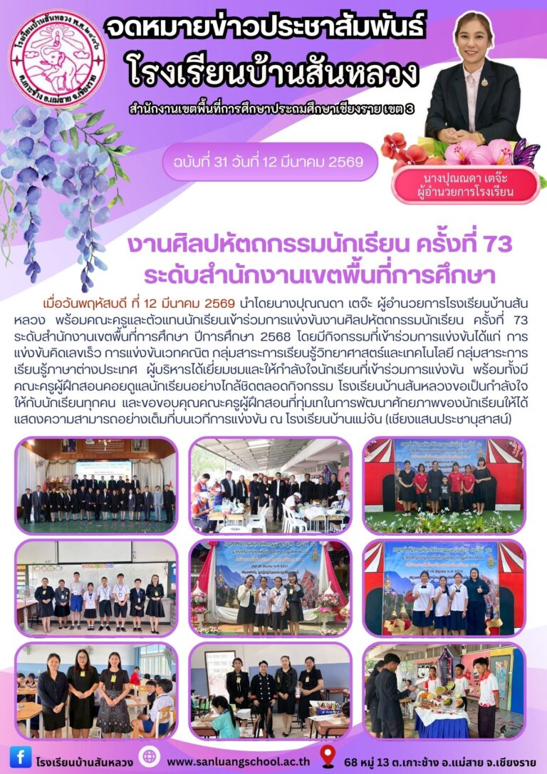 กิจกรรมวันภาษาไทย โรงเรียนบ้านสันหลวง ปีการศึกษา 2567