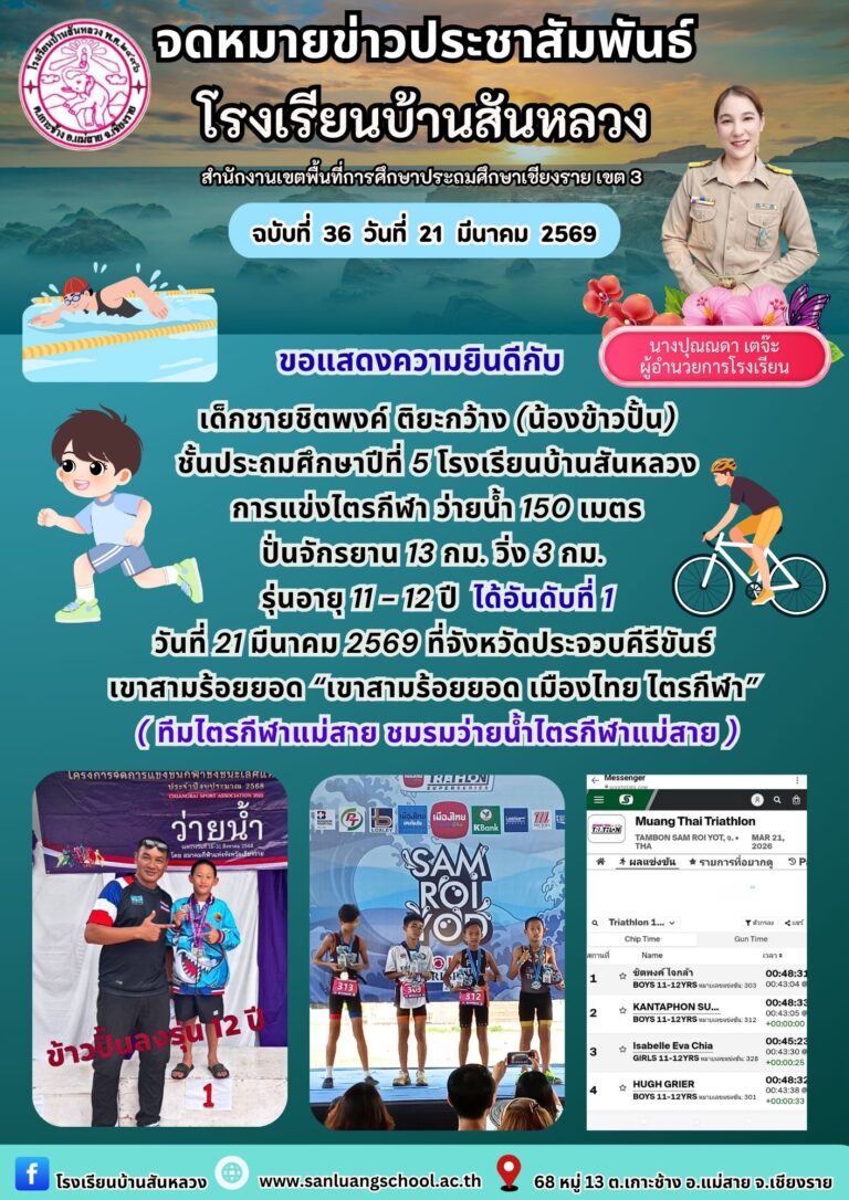 ขอแสดงความยินดีกับ เด็กชายวรธัน เกย์เย็น (น้องแสตมป์) ชั้นมัธยมศึกษาปีที่ 2 โรงเรียนบ้านสันหลวง