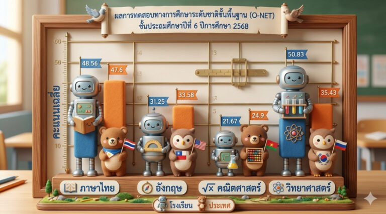 ผลคะแนน (O-NET ) ระดับชั้นประถมศึกษาปีที่ 6 ปีการศึกษา 2568