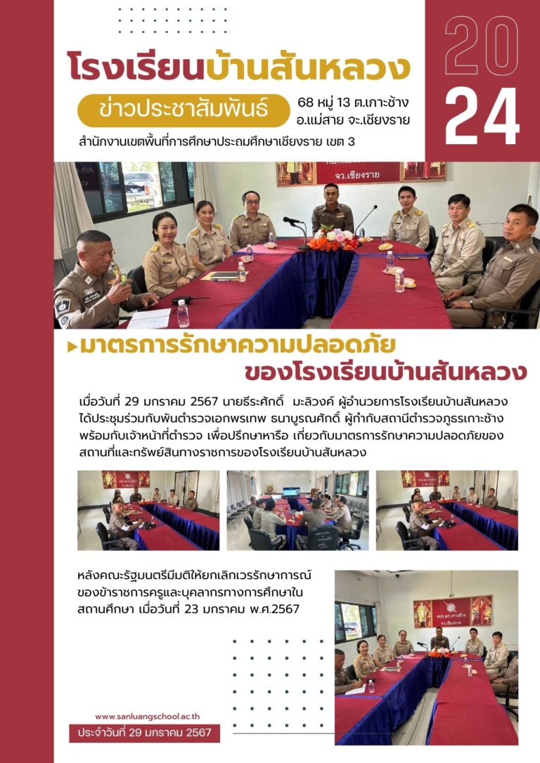 มาตรการรักษาความปลอดภัยของสถานที่และทรัพย์สินทางราชการของโรงเรียนบ้านสันหลวง