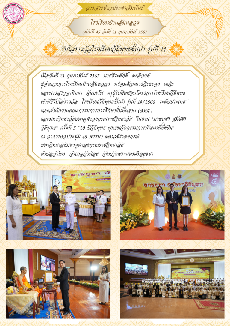 รับโล่รางวัลโรงเรียนวิถีพุทธ