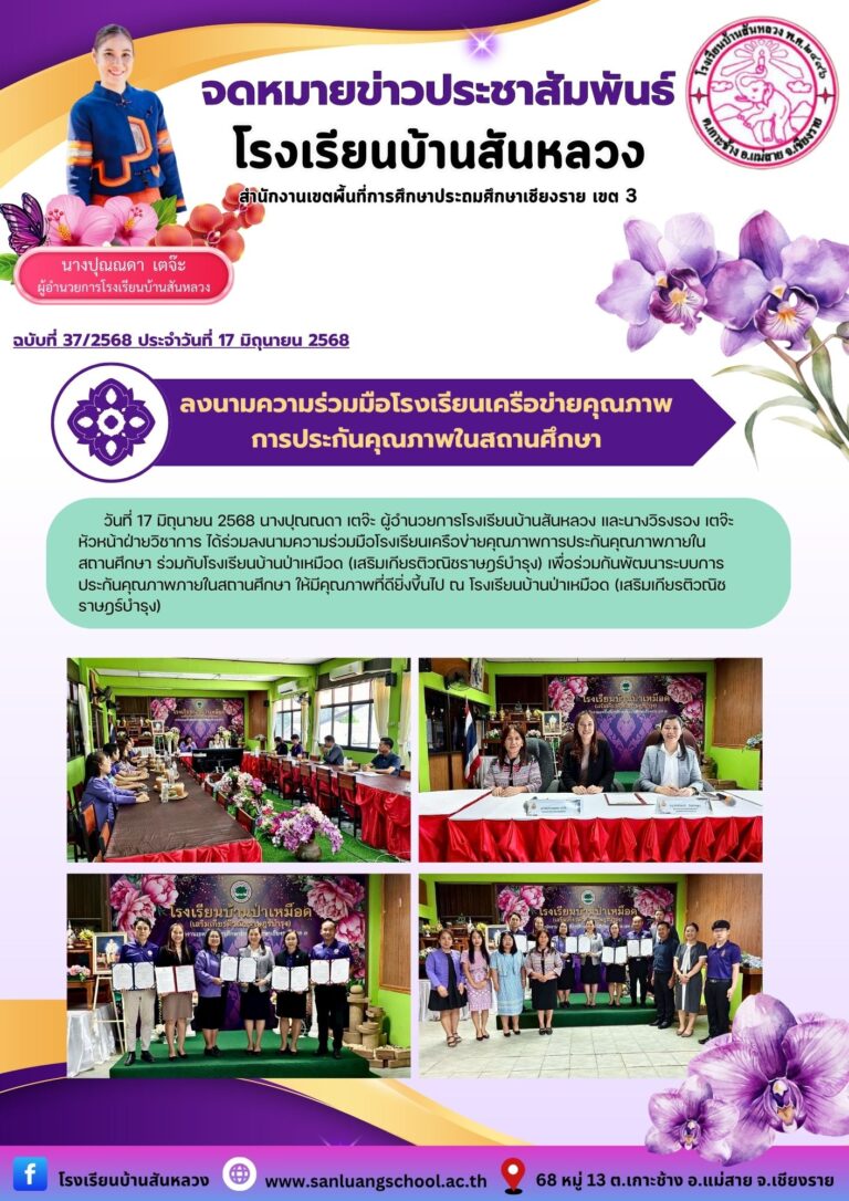 ลงนามความร่วมมือโรงเรียนเครือข่ายคุณภาพการประกันคุณภาพในสถานศึกษา