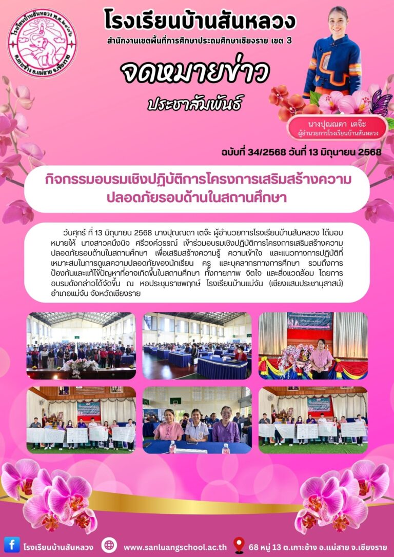 กิจกรรมอบรมเชิงปฏิบัติการโครงการเสริมสร้างความปลอดภัยรอบด้านในสถานศึกษา