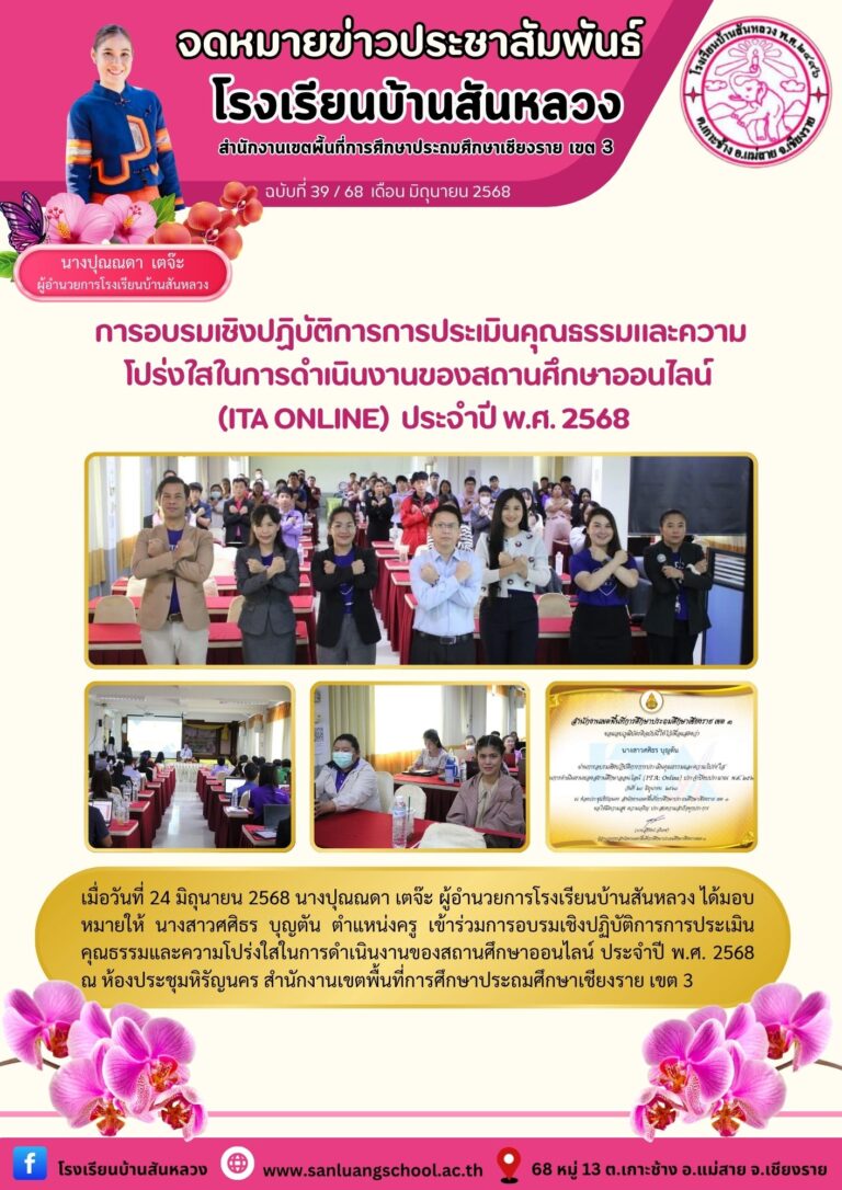การอบรมเชิงปฏิบัติการการประเมินคุณธรรมและความโปร่งใสในการดำเนินงานของสถานศึกษาออนไลน์ (ITA Online) ประจำปี พ.ศ. 2568