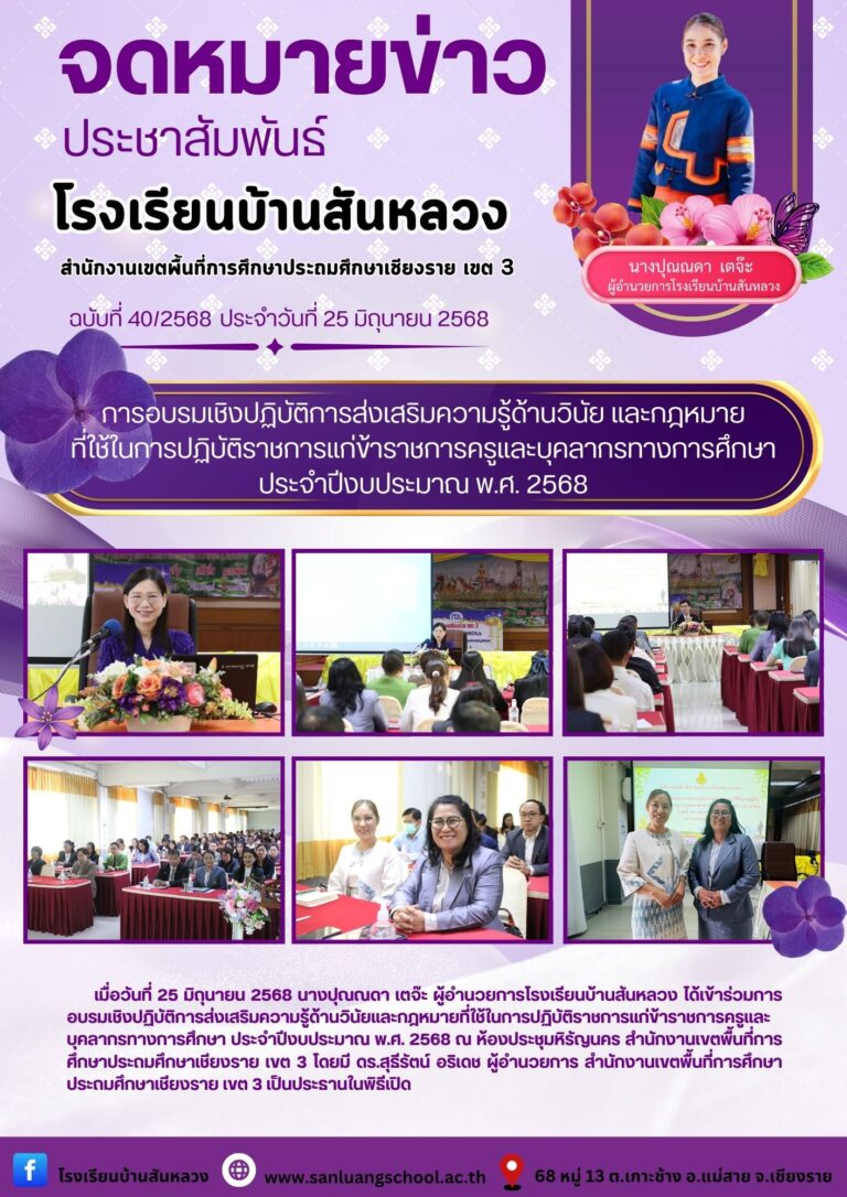 การอบรมเชิงปฏิบัติการส่งเสริมความรู้ด้านวินัย และกฎหมายที่ใช้ในการปฏิบัติราชการแก่ข้าราชการครูและบุคลากรทางการศึกษา ประจำปีงบประมาณ พ.ศ. 2568