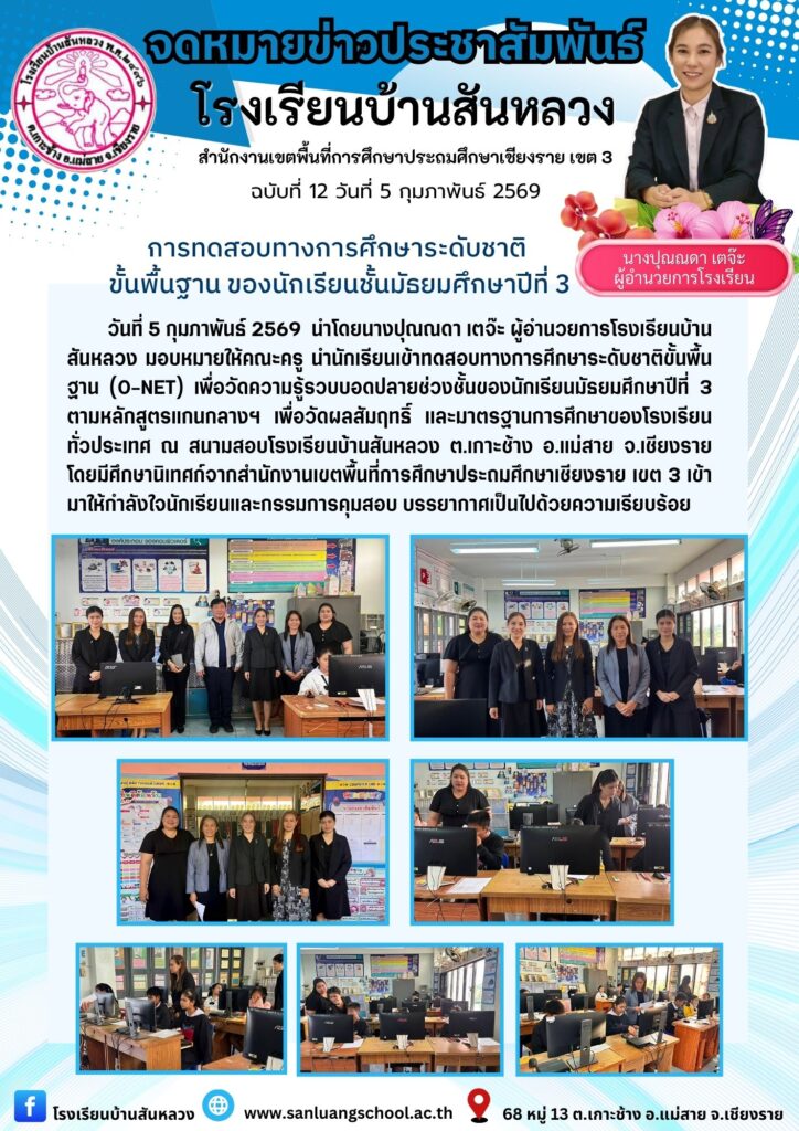 การทดสอบทางการศึกษาระดับชาติ ขั้นพื้นฐาน ของนักเรียนชั้นมัธยมศึกษาปีที่ 3 ข่าวประชาสัมพันธ์ วารสาร โรงเรียน 05 ก.พ. 2026 22 share tweet share