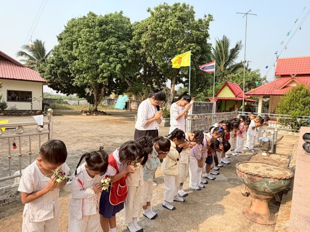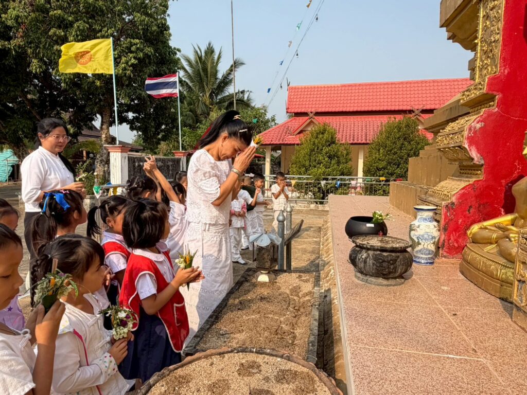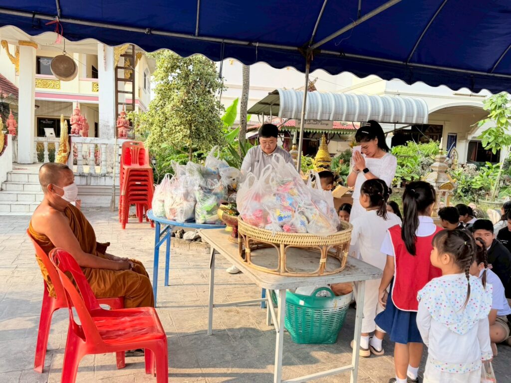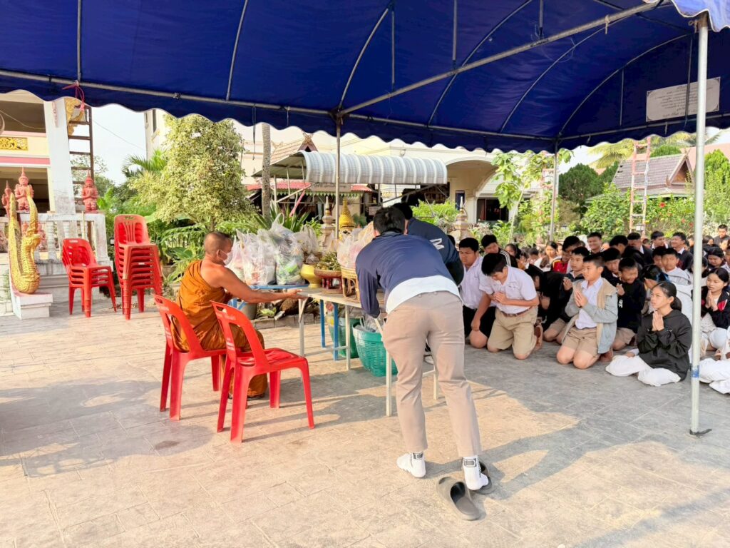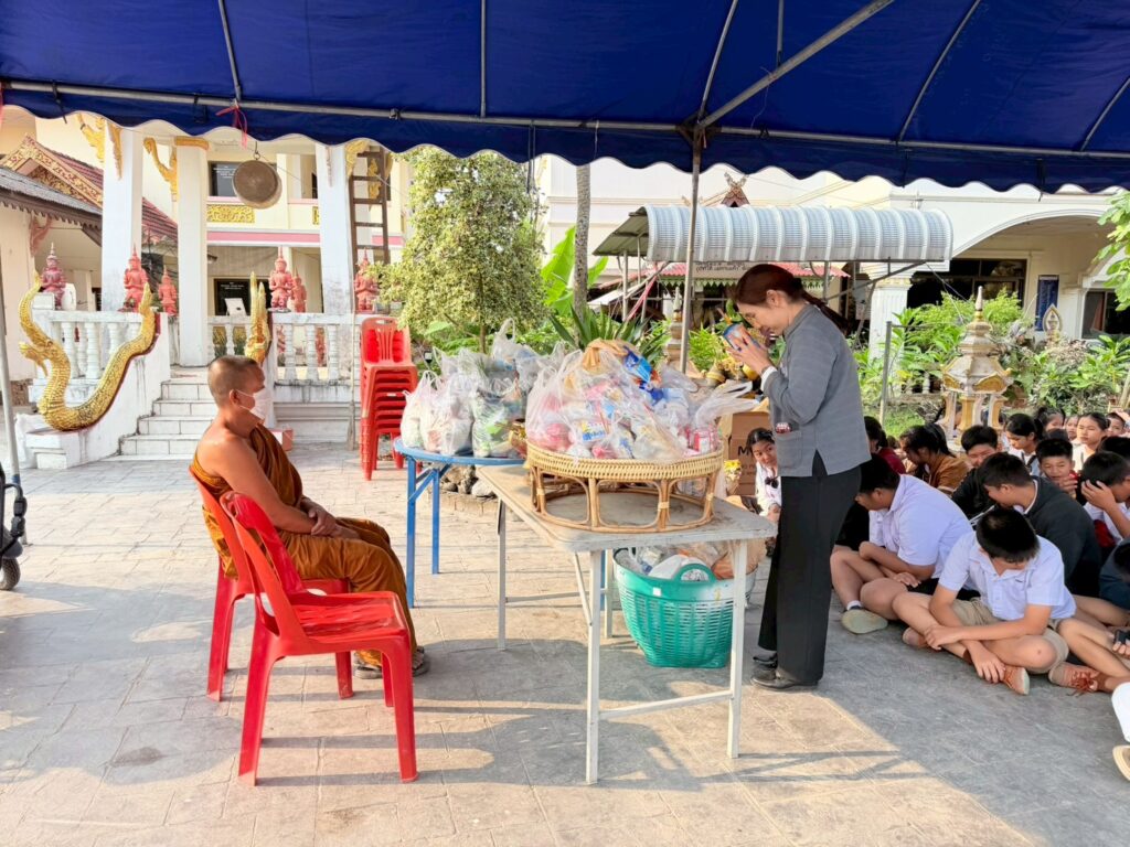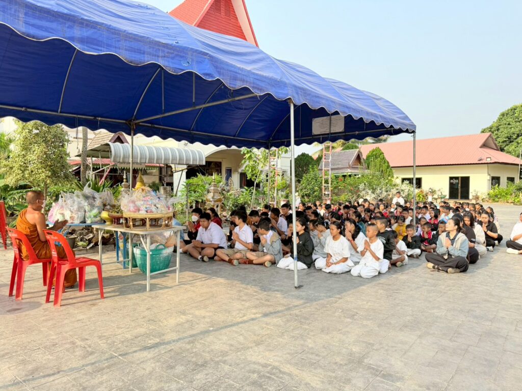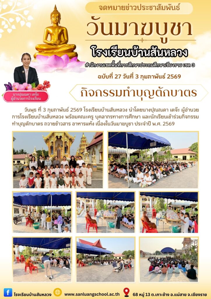 วันพุธ ที่ 3 กุมภาพันธ์ 2569 โรงเรียนบ้านสันหลวง นำโดยนางปุณณดา เตจ๊ะ ผู้อำนวยการโรงเรียนบ้านสันหลวง พร้อมคณะครู บุคลากรทางการศึกษา และนักเรียนเข้าร่วมกิจกรรมทำบุญตักบาตร ถวายข้าวสาร อาหารแห้ง เนื่องในวันมาฆบูชา ประจำปี พ.ศ. 2569